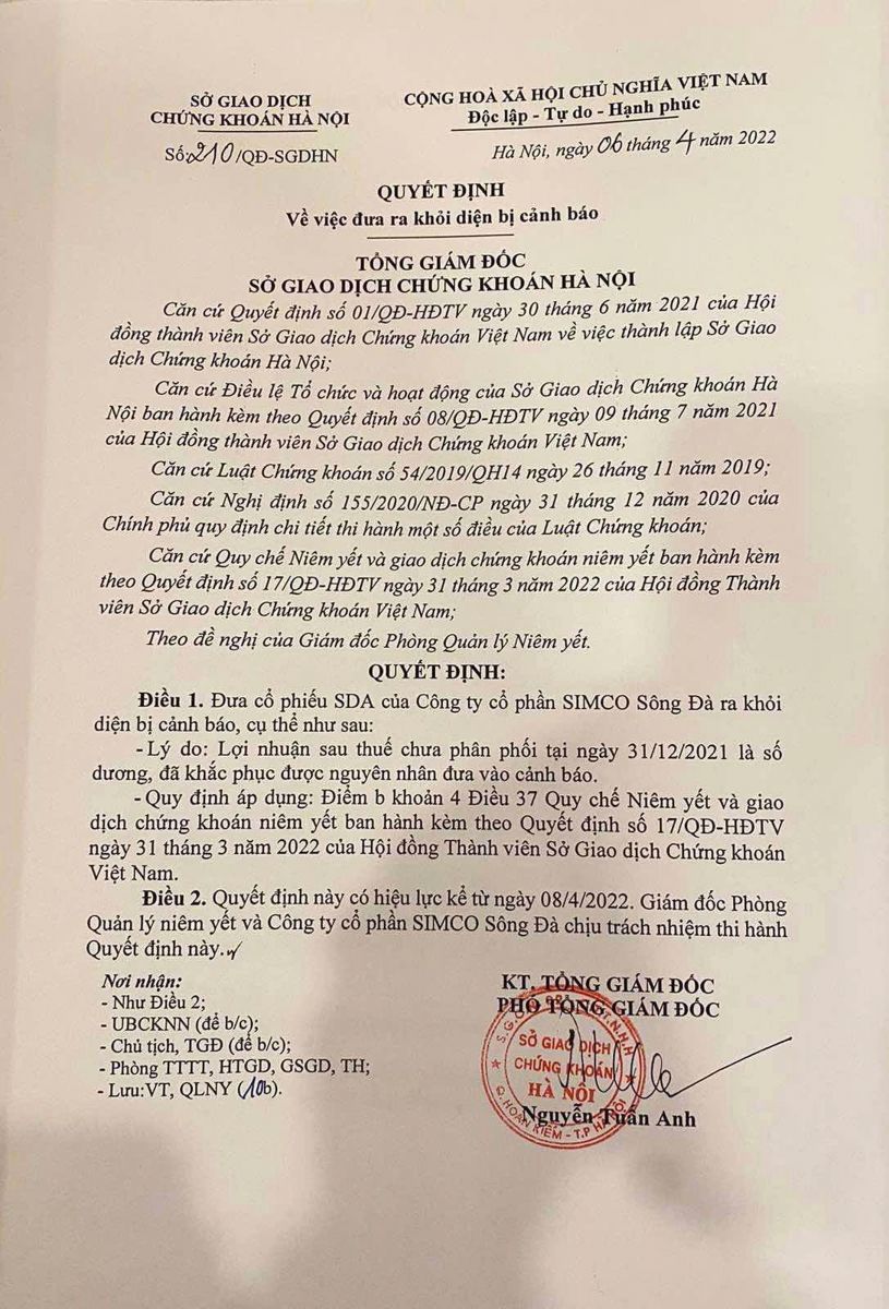 Cổ phiếu SDA được đưa ra khỏi diện bị cảnh báo