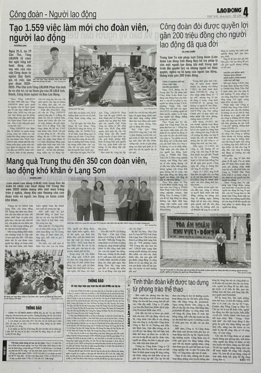 Công ty cổ phần SIMCO Sông Đà đăng thông tin Cải chính Trên Báo Lao Động ngày 26.09.2025 (số 226)